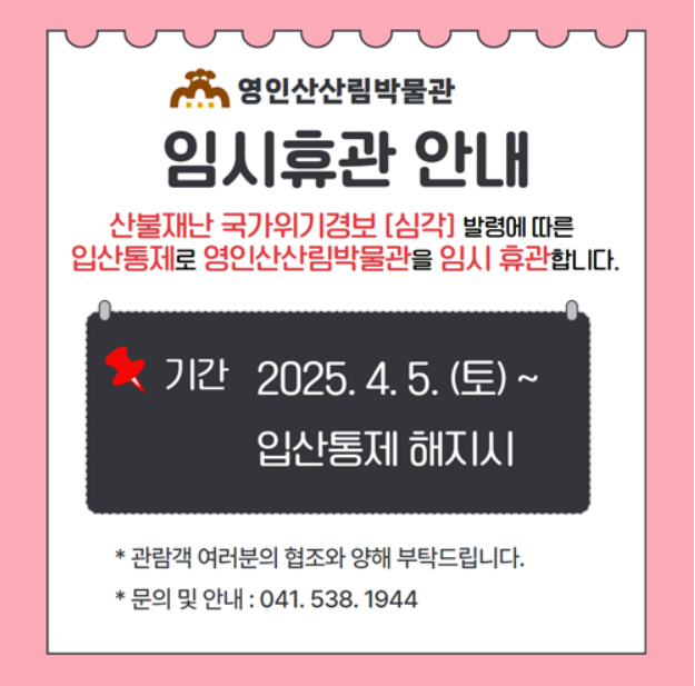 아산 염치읍에 있는 영인산산림박물관은 산림 생태와 나무 문화를 주제로 한 전문 박물관입니다. 숲 해설 프로그램과 산책로도 잘 조성되어 있어, 가족 나들이와 힐링에 제격입니다.