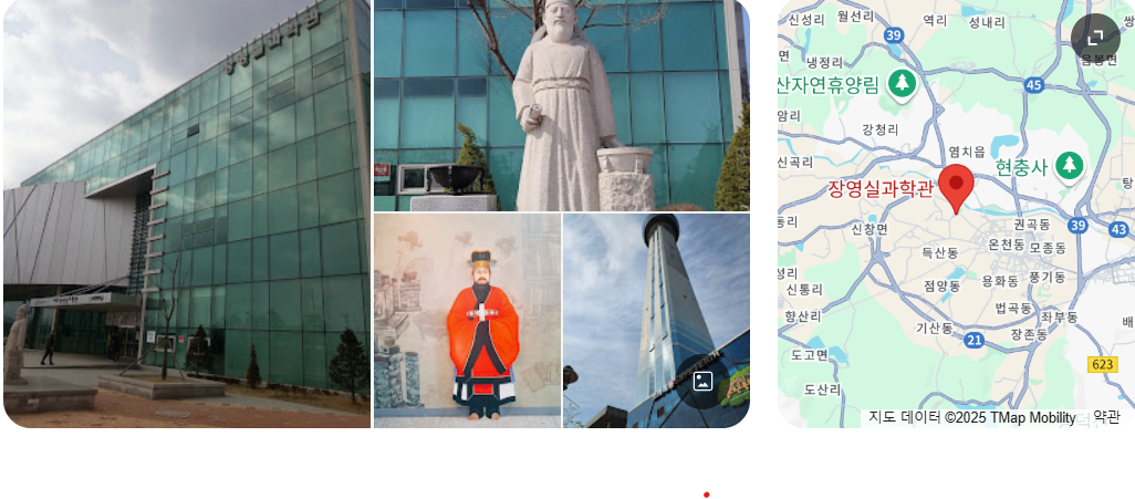 아산시 실옥로에 있는 장영실과학관은 과학 발명가 장영실을 기리는 체험형 과학관입니다. 직접 체험 가능한 전시물이 많아 과학적 호기심을 자극합니다. 4D 영상 체험관은 놓치지 말아야 할 포인트입니다.